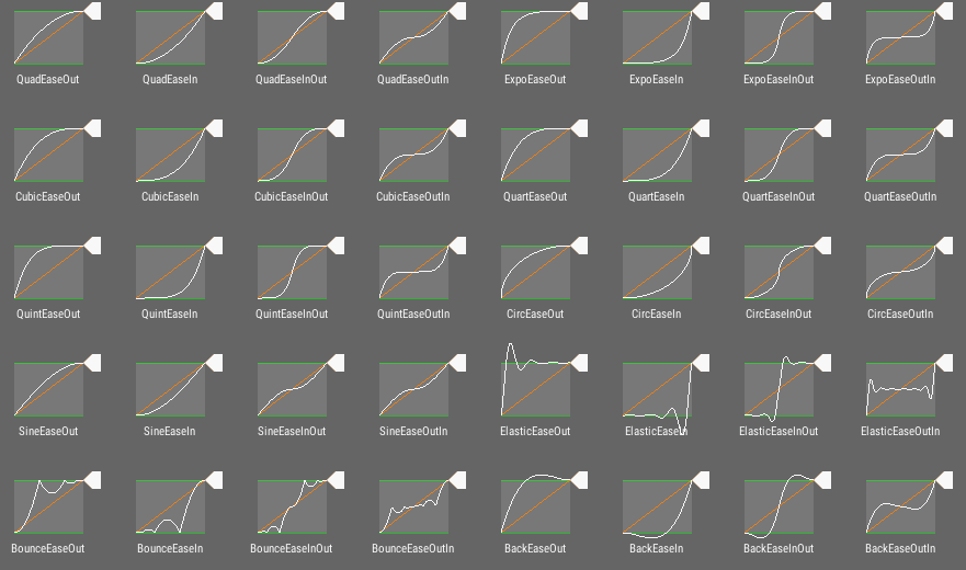 Better, but still doesn’t give a good feeling. Objects in real life do not reach a speed at instance, they have inertia. To make it similar in a simple way we can use Easing functions, functions that interpolate values (values, vectors, colors, etc) using different curves.