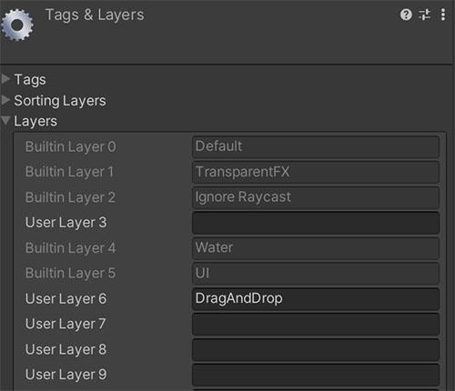 Since it is a performance-heavy operation, we will use some tricks to optimize it. First, we will create a layer to discard objects that are not involved in the operation. We will name it ‘DragAndDrop’.