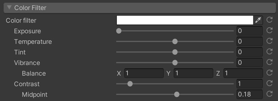 Exposure: Overall brightness adjustmentColor Filter: Overall color tint applied to the imageWhite Balance