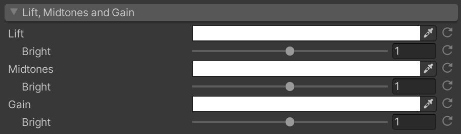Color: RGB midtone adjustment (Default: White)Brightness: 0.0 to 2.0 (Default: 1.0)Gain (Highlights)