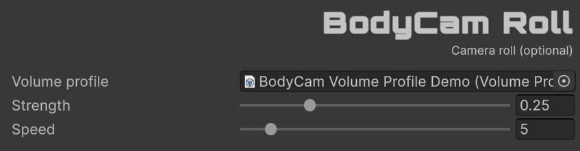 BodyCamRoll is an optional helper component that writes camera-rotation inertia into BodyCamVolume.offset so the center of the effect lags behind the camera.
