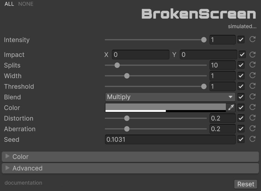 This standalone ‘Distortion’ control appears after Noise in the custom inspector and determines how much the damage refracts the background image.