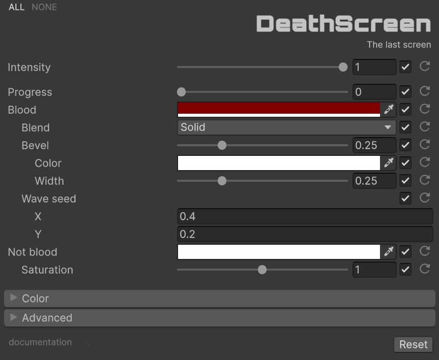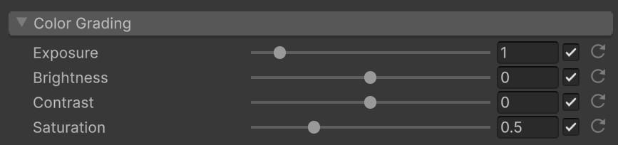 This standalone ‘Desaturation’ control appears after Distortion in the custom inspector and drains color from unaffected areas as damage increases.