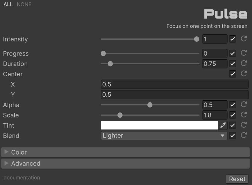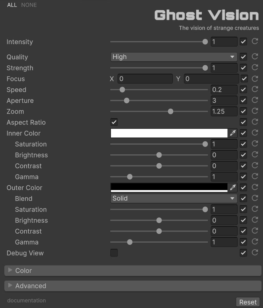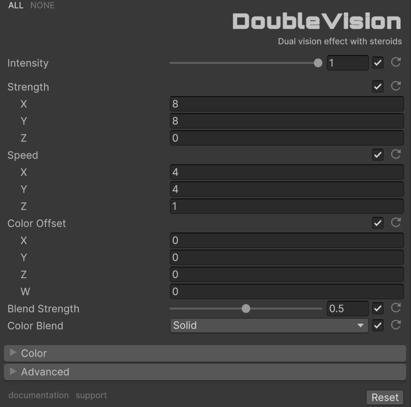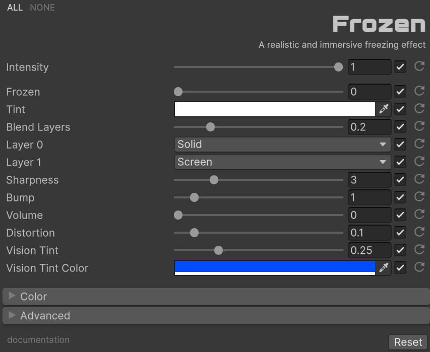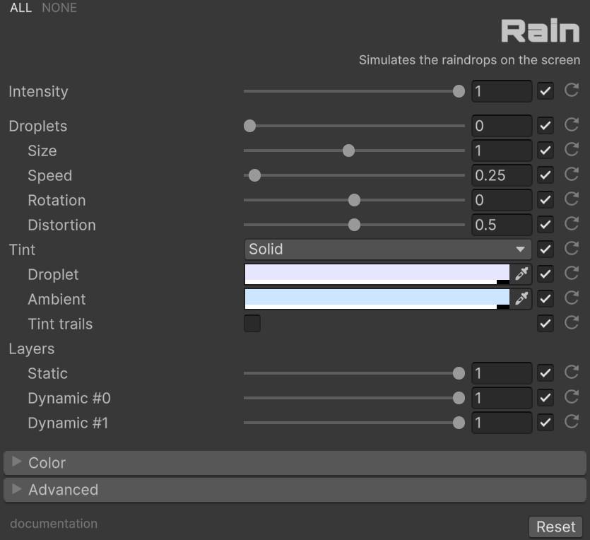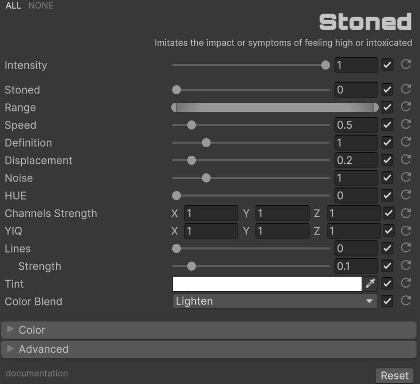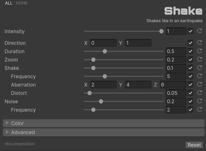 With ‘Intensity’ you can control the overall strength of the effect [0.0 - 1.0]. If it is 0, the effect will not be active.