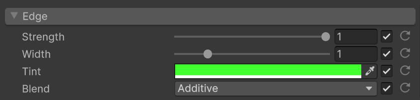 Under ‘Edge’ in the custom inspector, these controls shape the outer contour of the effect.
