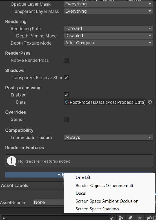 Once installed, when you select your ‘Universal Renderer Data’, you will see something like this: